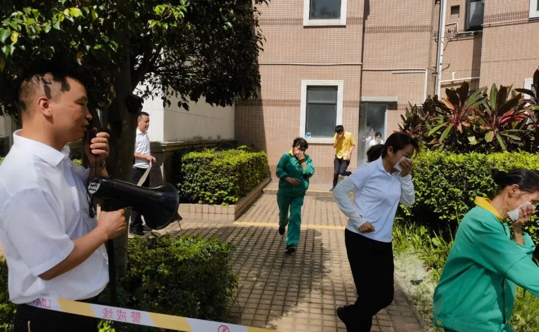 演习过程中,参训人员分组实操干粉灭火器扑灭明火,并模拟浓烟环境下沿安全通道有序撤离,有效提升了实战能力。