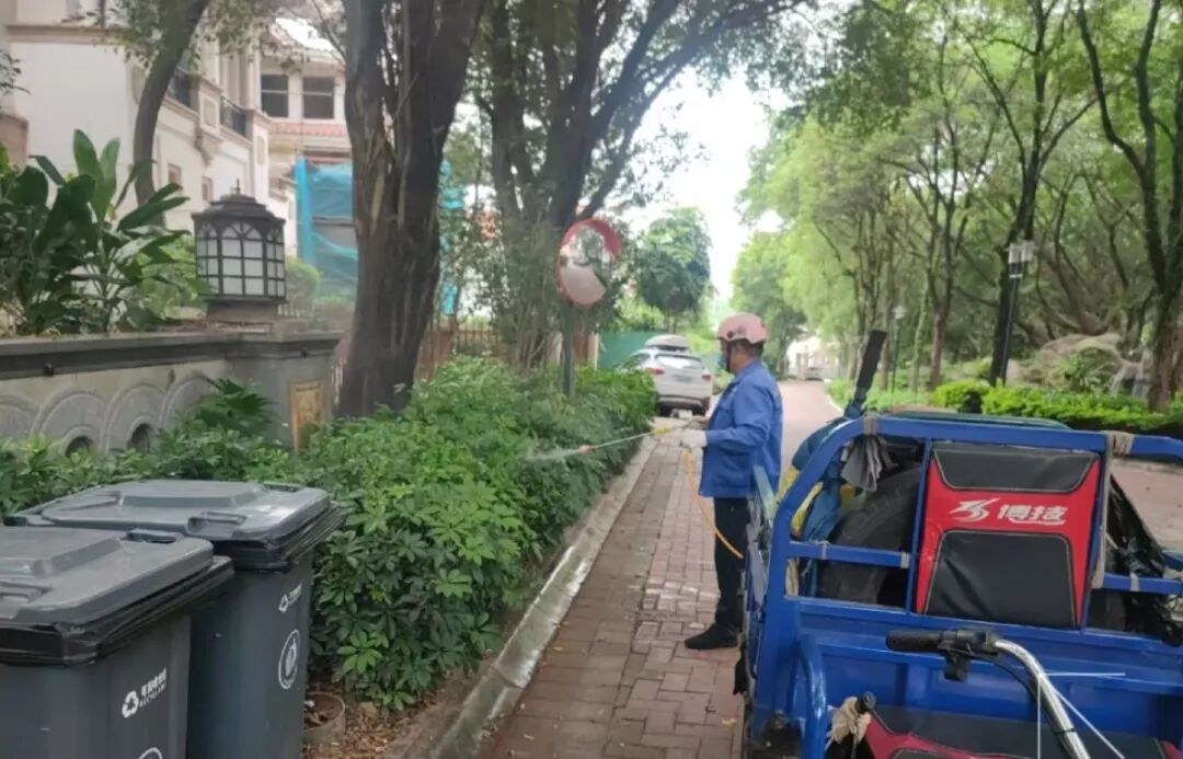 为有效防控病媒生物传播风险,我们持续开展科学化、规范化的环境消杀工作。对公共区域的下水道、排水沟等潮湿环境,和垃圾房、垃圾桶周边等易滋生害虫的场所,实施定点定时药物投放与滞留喷洒相结合的方式。