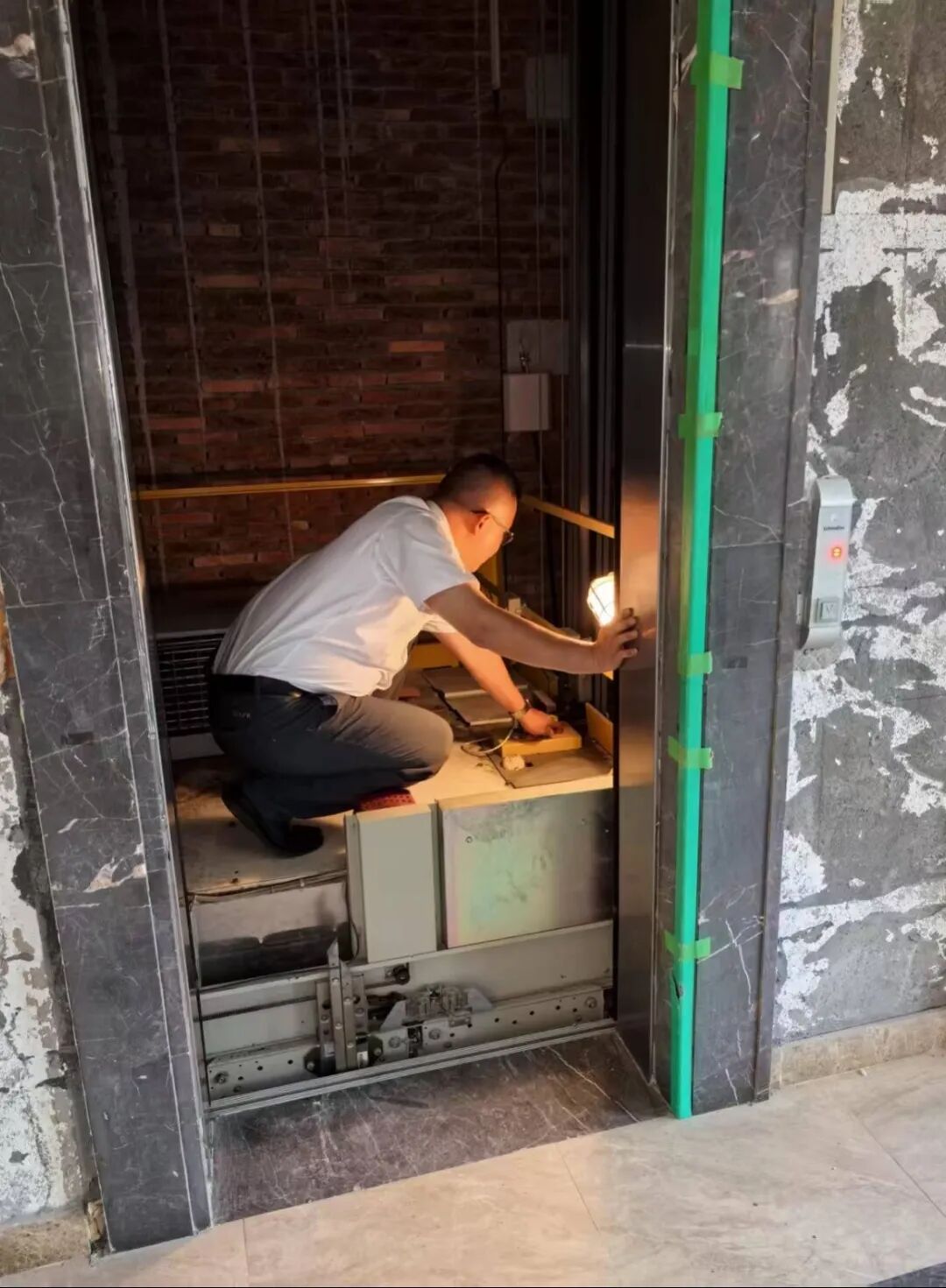 演练模拟电梯故障导致乘客被困场景,我们通过"紧急报警响应-故障定位-三方通话安抚-专业救援联动"全流程实战操作,重点检验并培训提高工作人员接警处置、救援操作及情绪疏导能力。