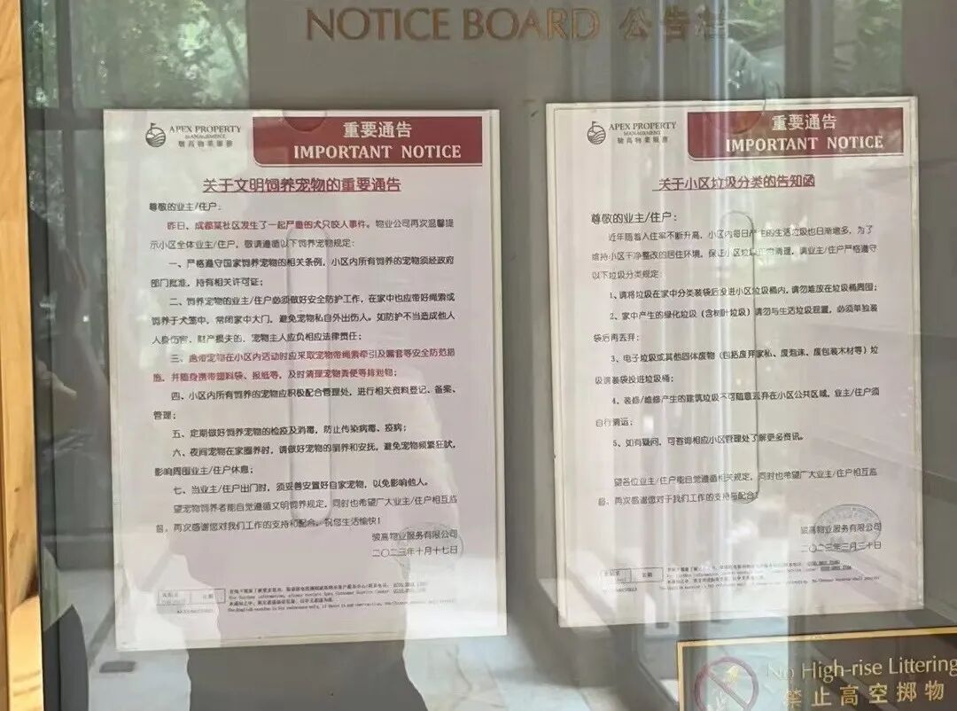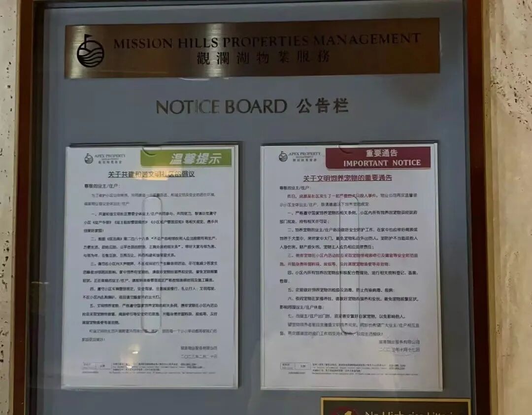 10月16日,成都某小区发生一起令人痛心的事件,一名幼童遭到恶犬撕咬,让无数人揪心。骏高物业再次上门派发及张贴温馨提示,提醒小区业主/住户自觉自律依法养犬、文明养犬,共建美好家园。