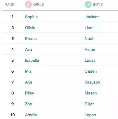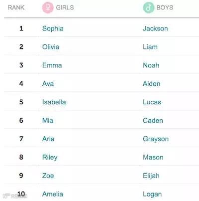 从下面这个Babycenter网站发布的2017最受欢迎英文名Top10里闭着眼选都不会错!