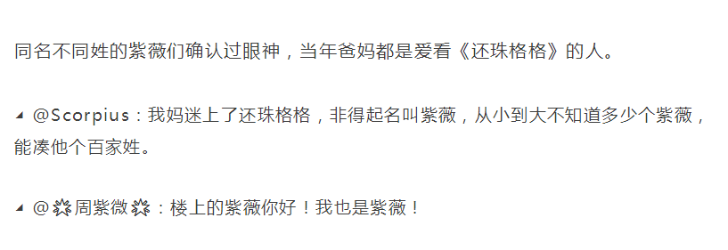 也有人嫌弃爸妈当年起名太草率(cursory)了……比如一对双胞胎姑娘的名字分别是赵婉(One)、和赵兔(Two)。你们感受一下。