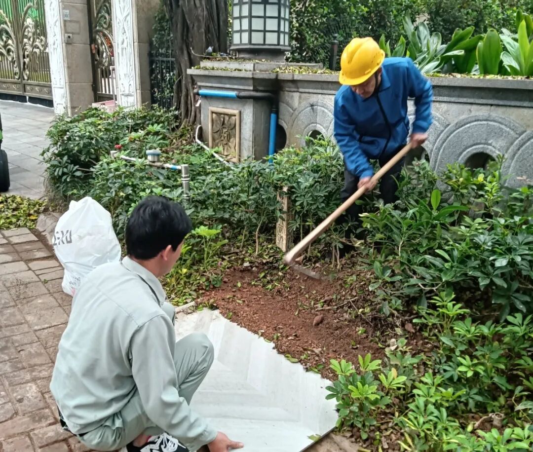 骏高物业在观澜湖各小区公共绿化带持续开展“地毯式”专项清理行动,认真捡拾绿化带纸屑、烟蒂等杂物,坚持做到“发现一处、清理一处、干净一处”。