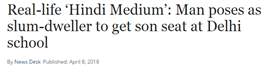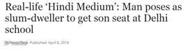 In a scene straight out of the comedy-drama film ‘Hindi Medium’, a businessman in Delhi posed as a slum-dweller in an attempt to get his son admitted into a private school.
