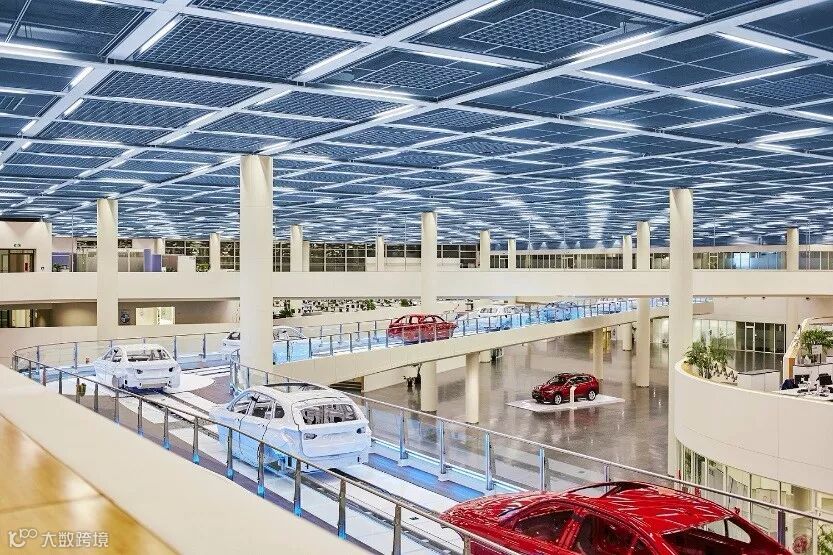 从喷漆车间到总装车间的车身自动传送系统贯穿主楼.