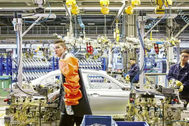 上周,一系列极具未来科技感的跨界定制时装设计(tailor-made crossover fashion designs)在沈阳华晨宝马铁西工厂(BMW Brilliance Automotive Co’s Plant Tiexi)发布。现场是这样的: