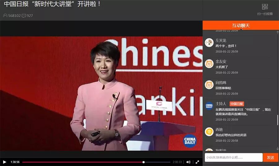 “中国日报创办新时代大讲堂,就是致敬新时代,积极地拥抱新时代、阐释新时代、传播新时代。”