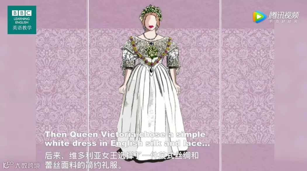 后来,维多利亚女王选择了一件英式丝绸和蕾丝面料的简约礼服。
