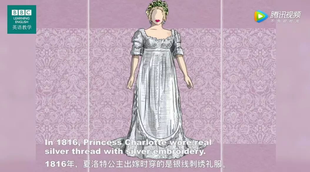 1816年,夏洛特公主出嫁时穿的是银线刺绣礼服。