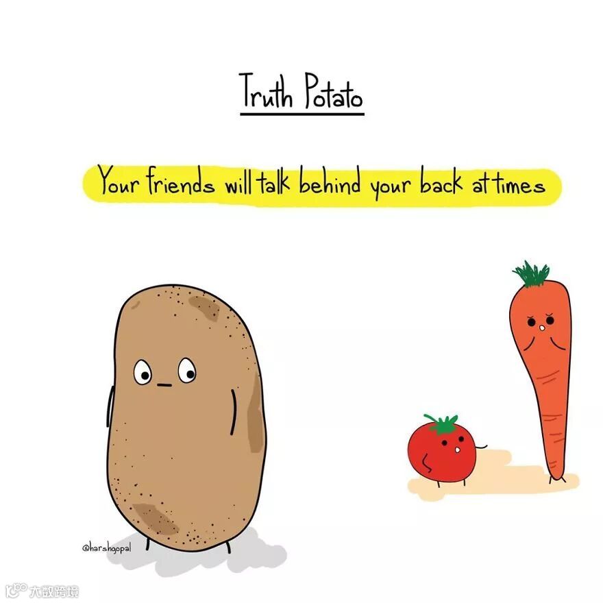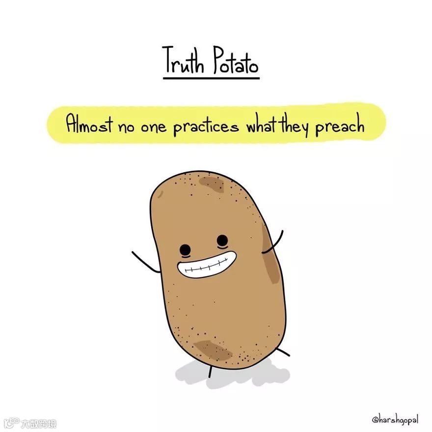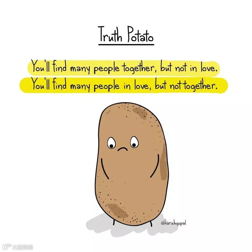 近日,Instagram上一个叫Truth Potato的账号,用可爱的土豆形象,告诉了大家一个个残酷事实及人生智慧。