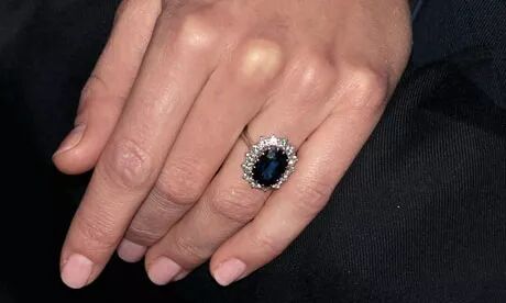 2010年威廉王子向凯特求婚时送的戒指也具备很强的家庭情感纽带象征意义。因为那是他的母亲戴安娜王妃当年的订婚戒指——一枚12克拉斯里兰卡蓝宝石,周围镶嵌14颗钻石。她去世后,这枚戒指传给了哈里王子。而后,哈里将戒指让给威廉王子,用以向凯特求婚。