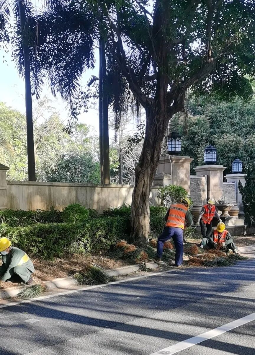 持续做好公共区域日常环境养护工作,跟进每日卫生清洁、垃圾清运、绿化修剪、绿化补种、公区消毒消杀等工作,用心呵护家园。