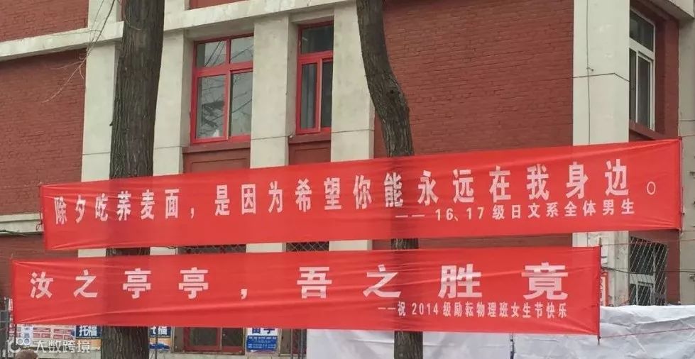 网上资源显示,女生节最早1986年起源于山东大学。而其中最主要的一项活动就是挂出赞扬女同学的横幅。
