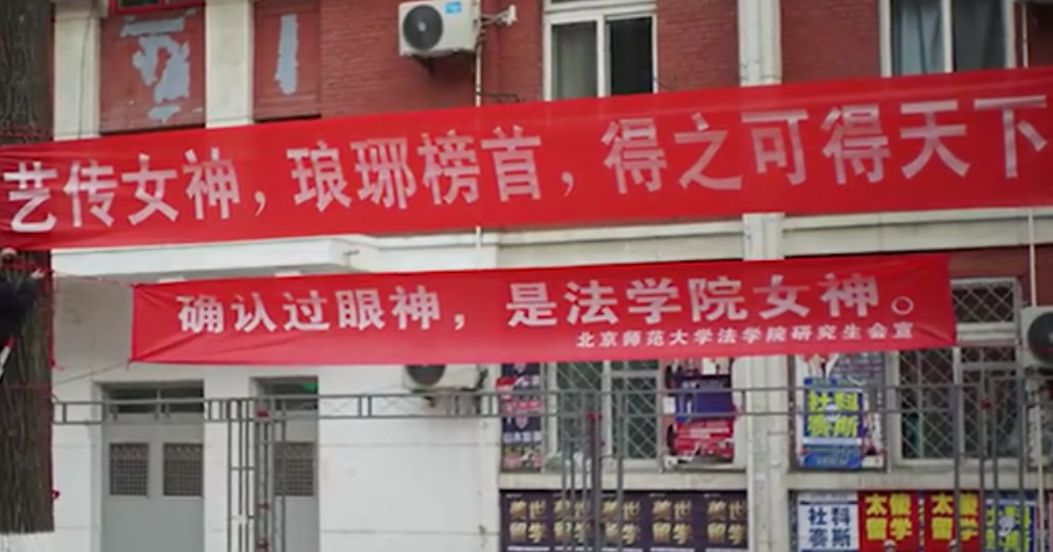 Online sources say the trend started in 1986 at Shandong University in eastern China. One of the main activities, it seems, is male students hanging out giant banners extolling their female peers.