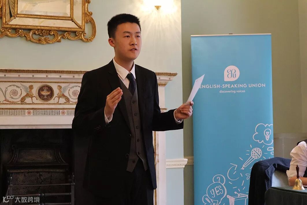 顾云翔在国际公共演讲比赛中激昂陈词。