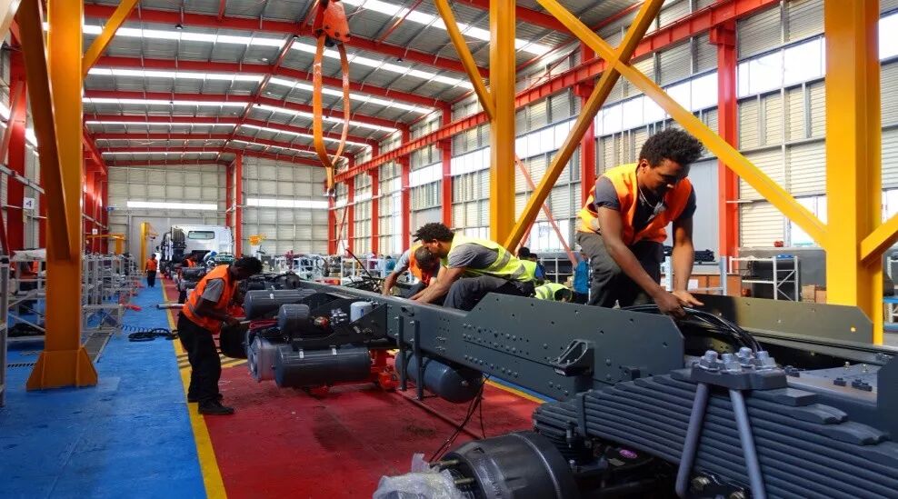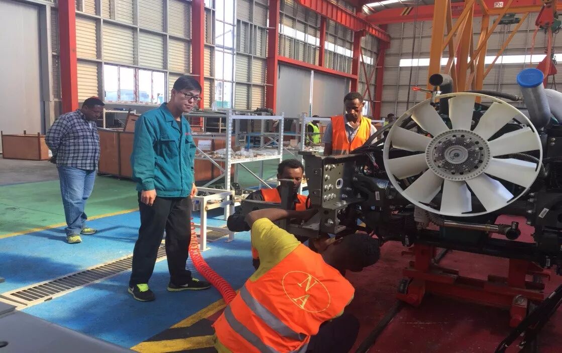 2017年2月份,这家合资工厂投产,成为辐射整个西非市场的重要生产基地。当地的工人在中国重汽的技术人员的指导下,尽心尽力(dedicated to)地组装每一部重型汽车。