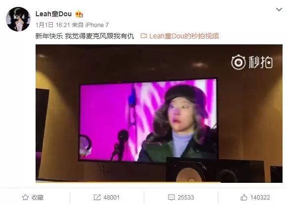 窦靖童随后转发了这个视频,并且表示:麦克风跟我有仇……