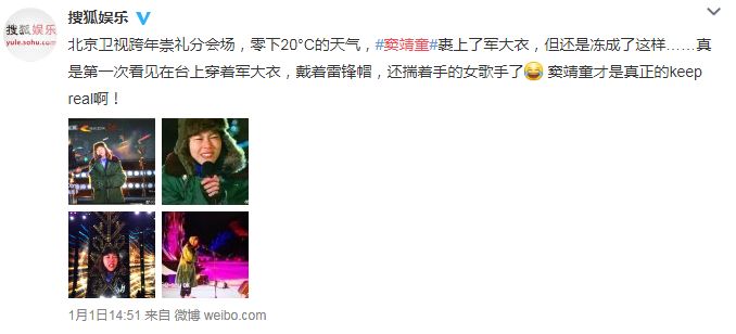 不少网友表示,第一次看见一个能在这么大的舞台上穿着军大衣唱歌的女歌手……大家纷纷表示,童童真是keep real……