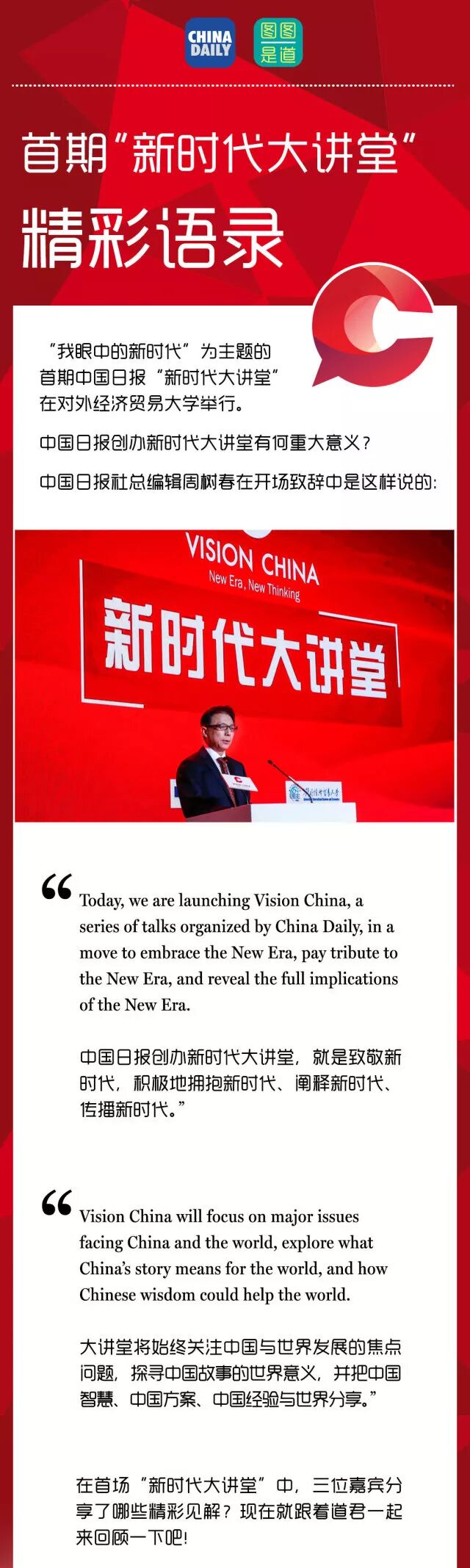 这场全英文演讲大咖云集,新时代大讲堂精彩开讲!丨Vision China(双语解析+直播回看)