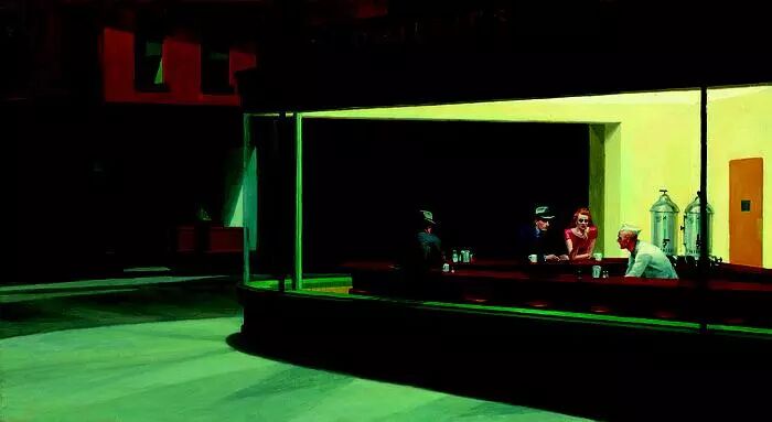 老实说,在此之前我没有听说过爱德华·霍普,但在看到他画作的第一眼,就能够辨认出这种强烈的明暗对比以及叙事性的存在。
