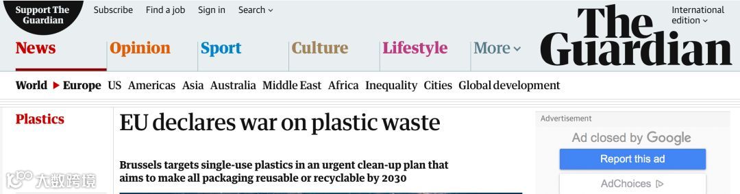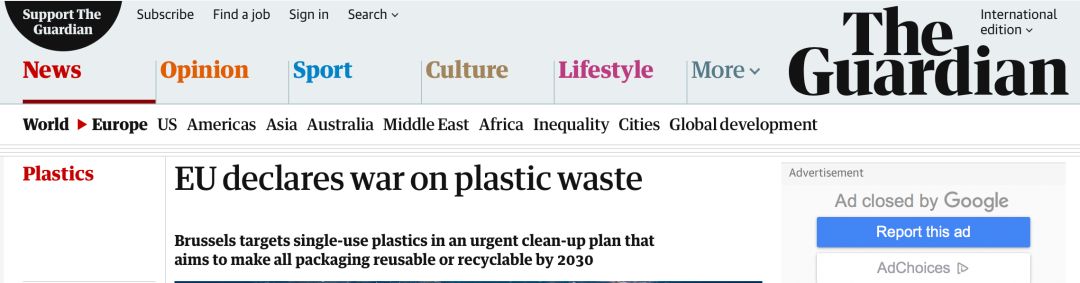欧盟也表示将对塑料废弃物正式宣战,目标是到2030年为止彻底清除掉一次性塑料用品,让所有包装都变得可回收或可再利用。