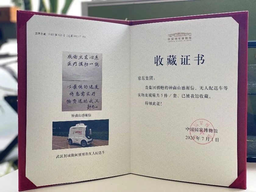 “大白”是一辆在疫情中立下汗马功劳的无人配送车,编号JD40006,上个月被国家博物馆永久收藏,成为 “科技新国宝”,成为国家在非常时期,人与科技相辅相成、和谐统一的历史物证。
