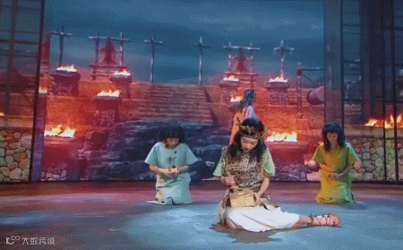 在《国家宝藏》的舞台剧中,周冬雨所扮演的瑶是良渚主掌神权的大祭司,琢玉功夫一流。在良渚遭遇洪灾之时,她坚持琢通玉琮,祈求神灵福佑良渚。