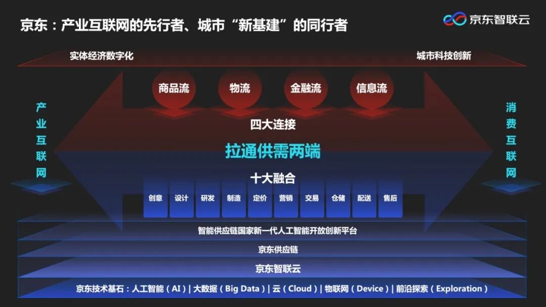 周伯文博士表示,京东作为首批把实体经济搬到互联网上的企业,一头连接产业互联网,另一头连接消费互联网,在零售、物流、供应链领域拥有多年的技术和行业积累,使京东成为少数具备互联网基础设施提供能力的公司之一。