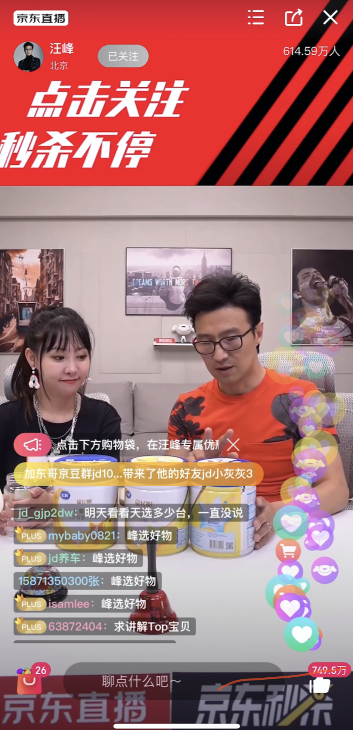 联想2020年最新款笔记本联想小新Pro13、华硕(ASUS)天选15.6英寸游戏本等超热门新品,在直播间掀起抢购热潮;国货代表飞鹤奶粉,更是在超级奶爸汪峰的带货下实现销量突破。此外今锦上麻辣小龙虾尾、三只松鼠巨型零食礼包、源氏大辣片等大牌好物也收获消费者的特别青睐。四个小时吸引超过915万人围观,最终,京东秒杀首席直播官汪峰的直播首秀以带货超2亿的战绩完美收官。