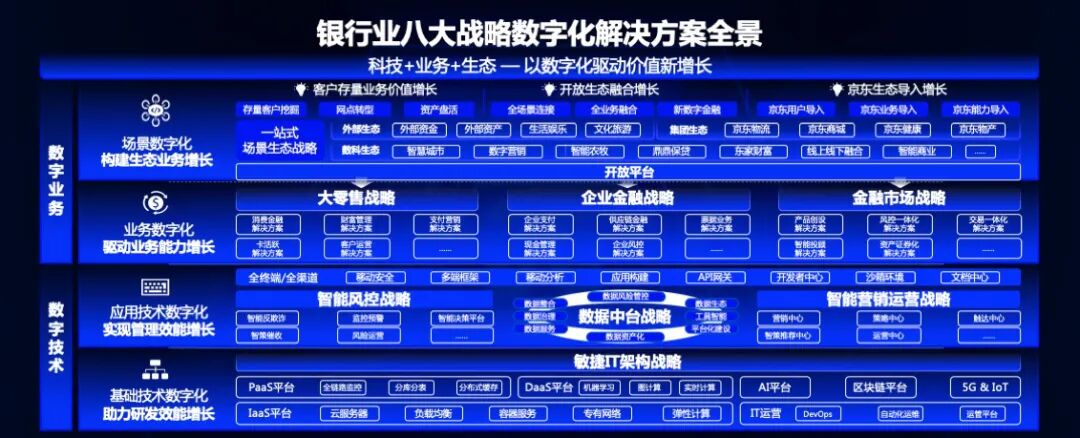 ▲ 京东数科为银行业八大战略提供的数字化解决方案全景