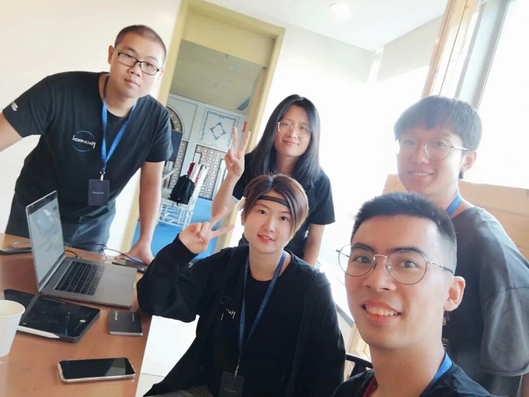 △ 林坤宁(右一)和小伙伴参加京东内部的编程马拉松比赛