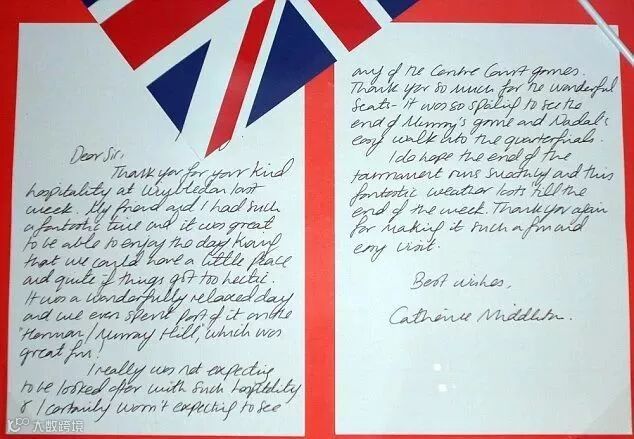 别忘了,你妈妈凯特王妃的英文字,那可是相当漂亮!