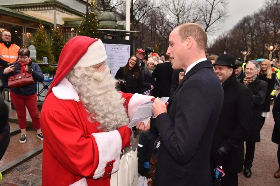 在赫尔辛基的节日集市上,威廉王子把小王子的信交给了圣诞老人。