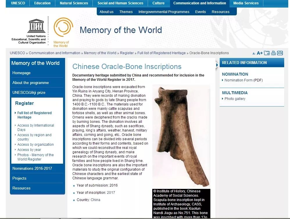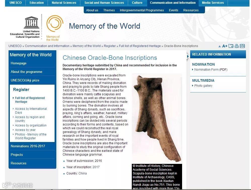 很多人可能都一直以为甲骨文是用来占卜(divination)的。这一次,这次“申遗”成功却让我们意识到甲骨文的内容要丰富得多。我们看看“世界记忆名录”官方对于甲骨文的推荐词: