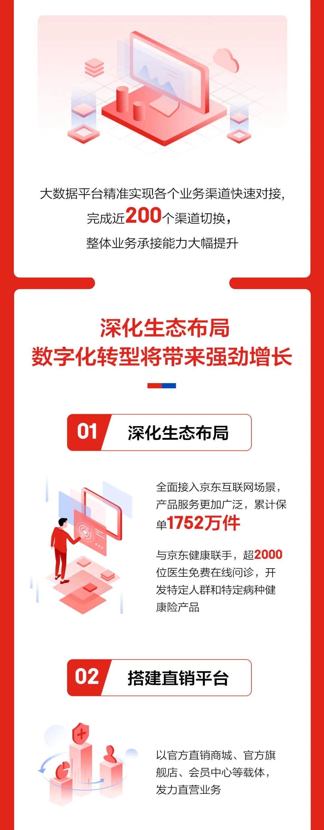 这主要得益于公司全面落实“简单创造美好生活”的使命,明确自身定位于“成为最值得信赖的数字化科技保险公司”,打造“保险+科技+服务”的经营模式。同时,发力线上互联网场景业务,在高效获取流量和客户留存等方面,展示较强实力。