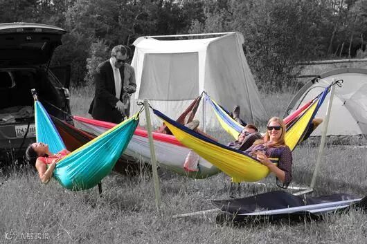 有了这个支架,吊床随处都能搭。可以搭在水上、雪上、公路上。