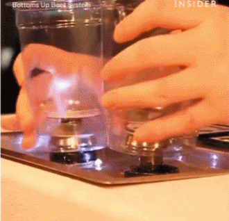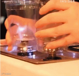 您只需把杯子放到啤酒机上,杯底磁铁就会自动抬高,让啤酒流进杯子里。