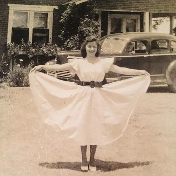这我最喜欢我奶奶的照片,1942年拍的。奶奶特别坚强,离开酒鬼丈夫之后,一个人拉扯大6个孩子。每周七天都在加油站工作,从早上3点工作到下午5点。那时候我每周末都和她待在一起,就在加油站打地铺睡下,她真是太棒了。