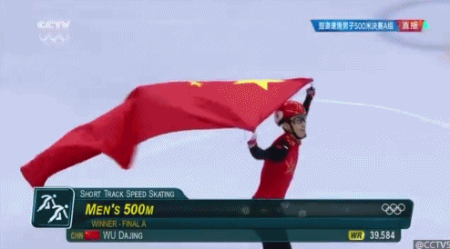 没有任何的问题!不需要等待任何商议的结果!武大靖已经身披国旗,此时在赛场当中,让五星红旗在场地里高高地飘扬!
