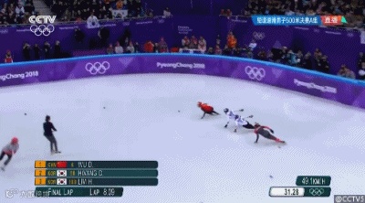 韩国选手黄大宪和林孝俊全力追赶武大靖,不过武大靖从比赛枪响那刻起就一路强势领先,在赛道上丝毫不让。