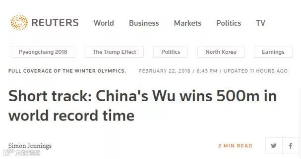 路透社更是用flawless(完美的、无瑕疵的)来形容武大靖在比赛中的表现。