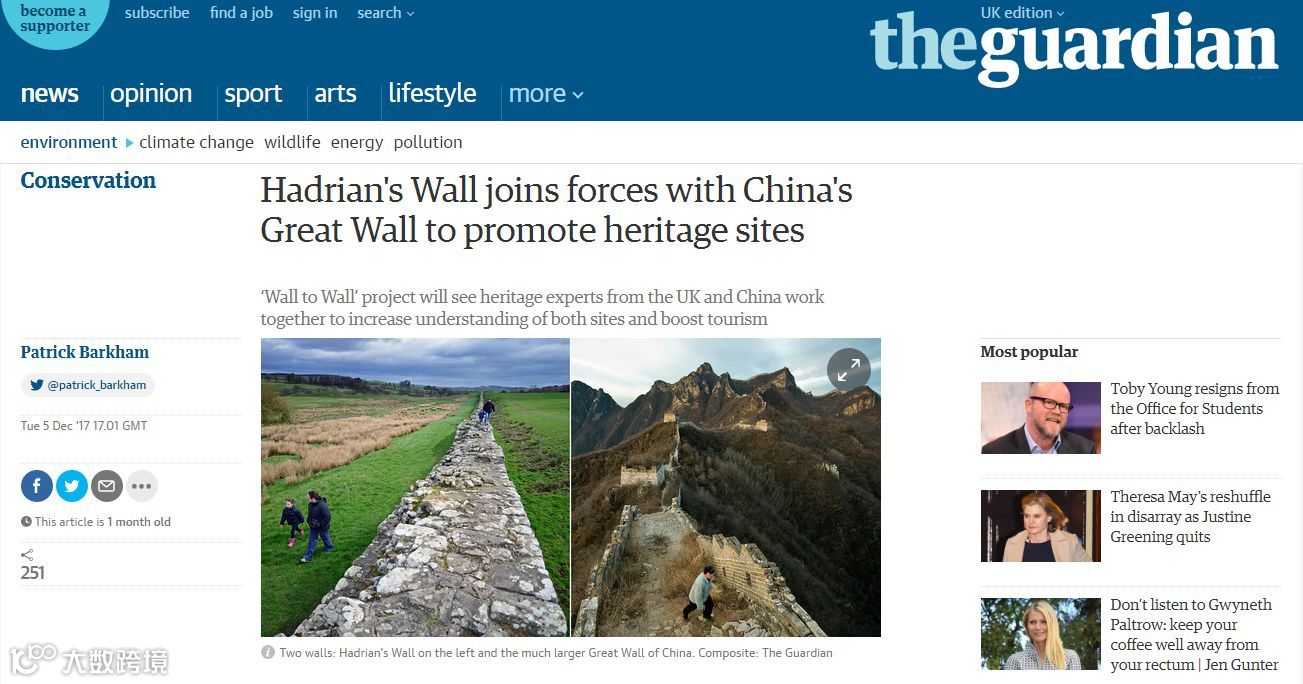 英国广播公司(BBC)和英国《卫报》(The Guardian)在报道这次中英文化遗产联手时都不约而同地用到了“墙墙联手”(Wall to Wall)这个词。