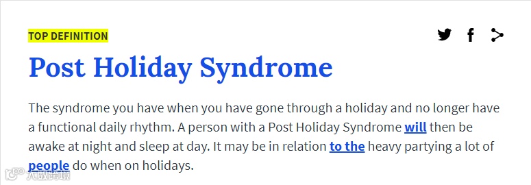 最后,再给大家送上一份有关“节后综合症”的表达,不妨背背单词,热热身。