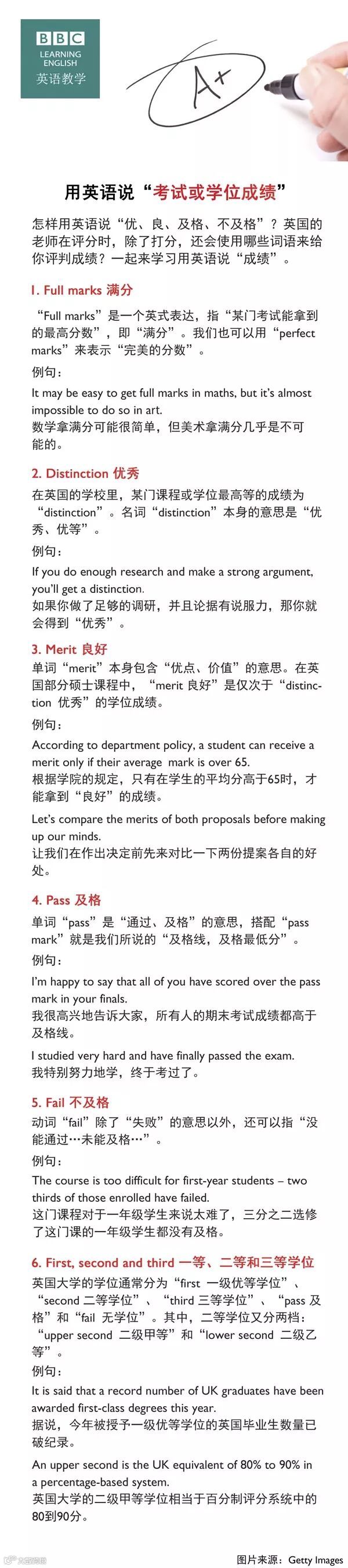 怎样用英语说“优、良、及格、不及格”?英国的老师在评分时,除了打分,还会使用哪些词语来给你评判成绩?一起来学习用英语说“成绩”。