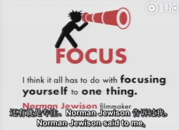 还有就是专注。Norman Jewison告诉过我:“最关键的是要使自己专注于一件事情。”