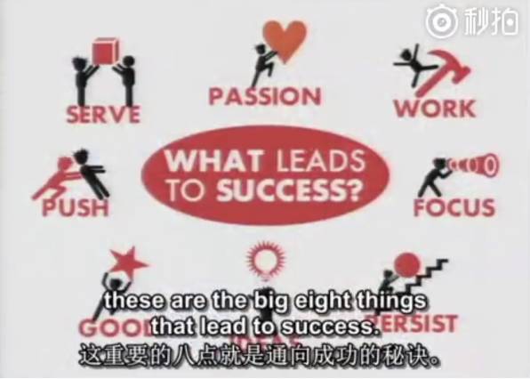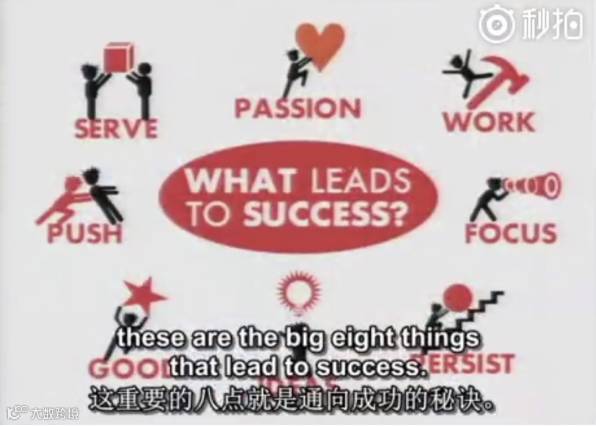 经过七年研究,采访了500多位成功人士,分析师理查德·圣约翰(Richard St. John)总结出来了成功的八个秘密(8 secrets of success),并在短短的三分钟内呈现给了听众。