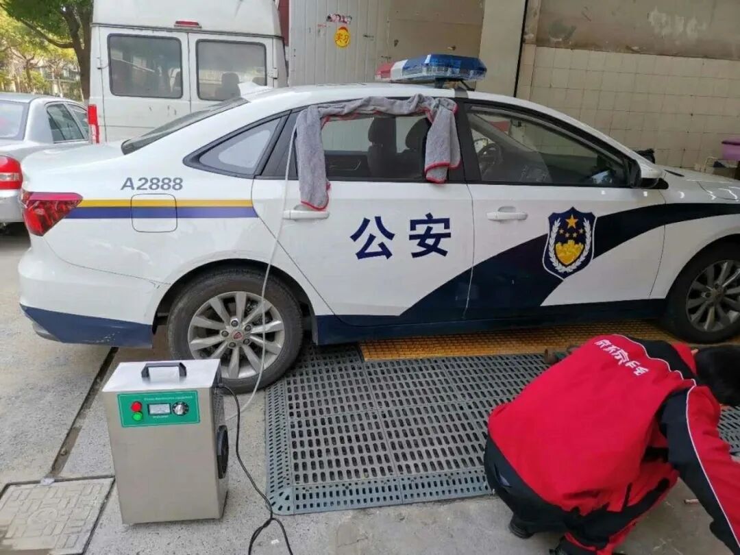 2月16日,通过与当地防疫部门的沟通协调后,赵军辉带着员工,做好充分防护准备后,带着专业消毒设备和工具,上门为一线工作车辆服务。