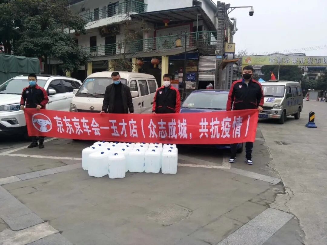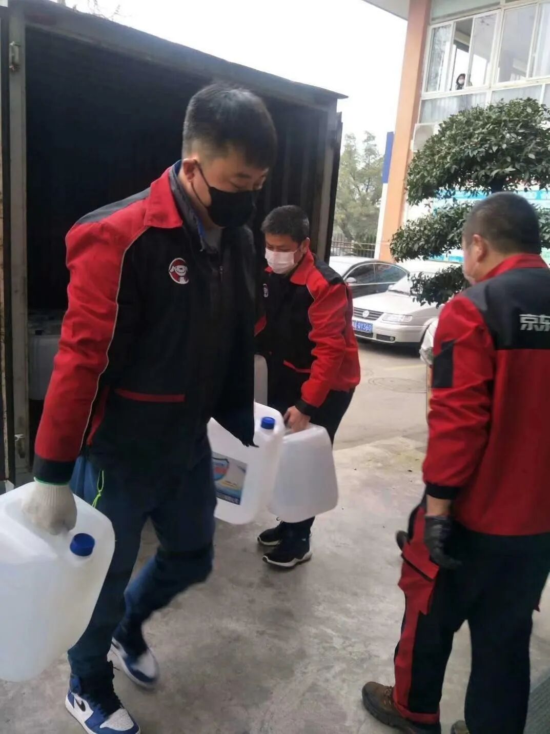 在四川成都,京东京车会“玉才-灌温路店”把好不容易筹来的消毒液捐献给了社区街道办。他们表示,从大年初一开始街道工作人员为早日排查到感染人员,一直战斗在一线,街道内小区、工厂、企业众多,顾不上休息,他们才是最需要防疫物资的。