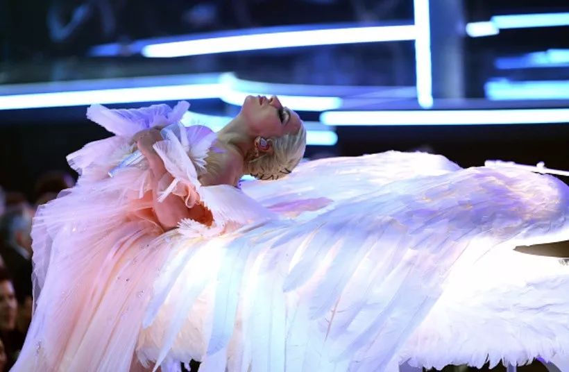 Gaga虽未得奖,但无论是红毯还是表演环节都非常给力,修身曳地黑色长裙的红毯造型气场全开,而现场表演时的白纱礼服更是美轮美奂,仙气十足。