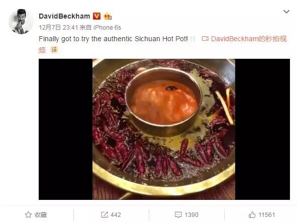 记不记得本月初,英国著名足球明星、“万人迷”贝克汉姆在微博上晒出了自己吃火锅的视频: